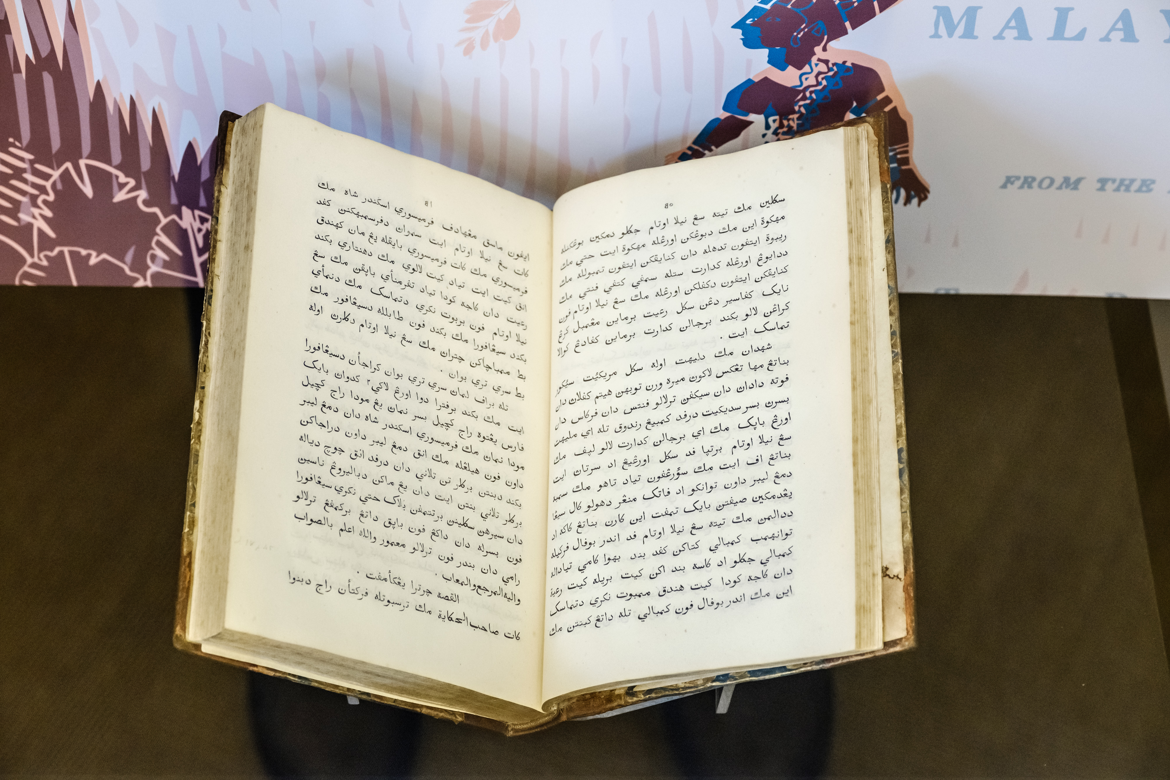 NN: The copy we have on display is the first printed version of Sulalat al-Salatin. Previously, this book would have been produced in the manuscript tradition by a group of copyists and scribes. At present, we know of 32 extant manuscript copies of the Sejarah Melayu. These manuscripts would have only been read in courtly settings by royalty, and sometimes formed part of the royal regalia as well. For example in the Riau courts, these manuscripts were wrapped in yellow silk, and read only during special functions. Access to the manuscripts were thus governed by social relationships, and would have been incredibly exclusive.