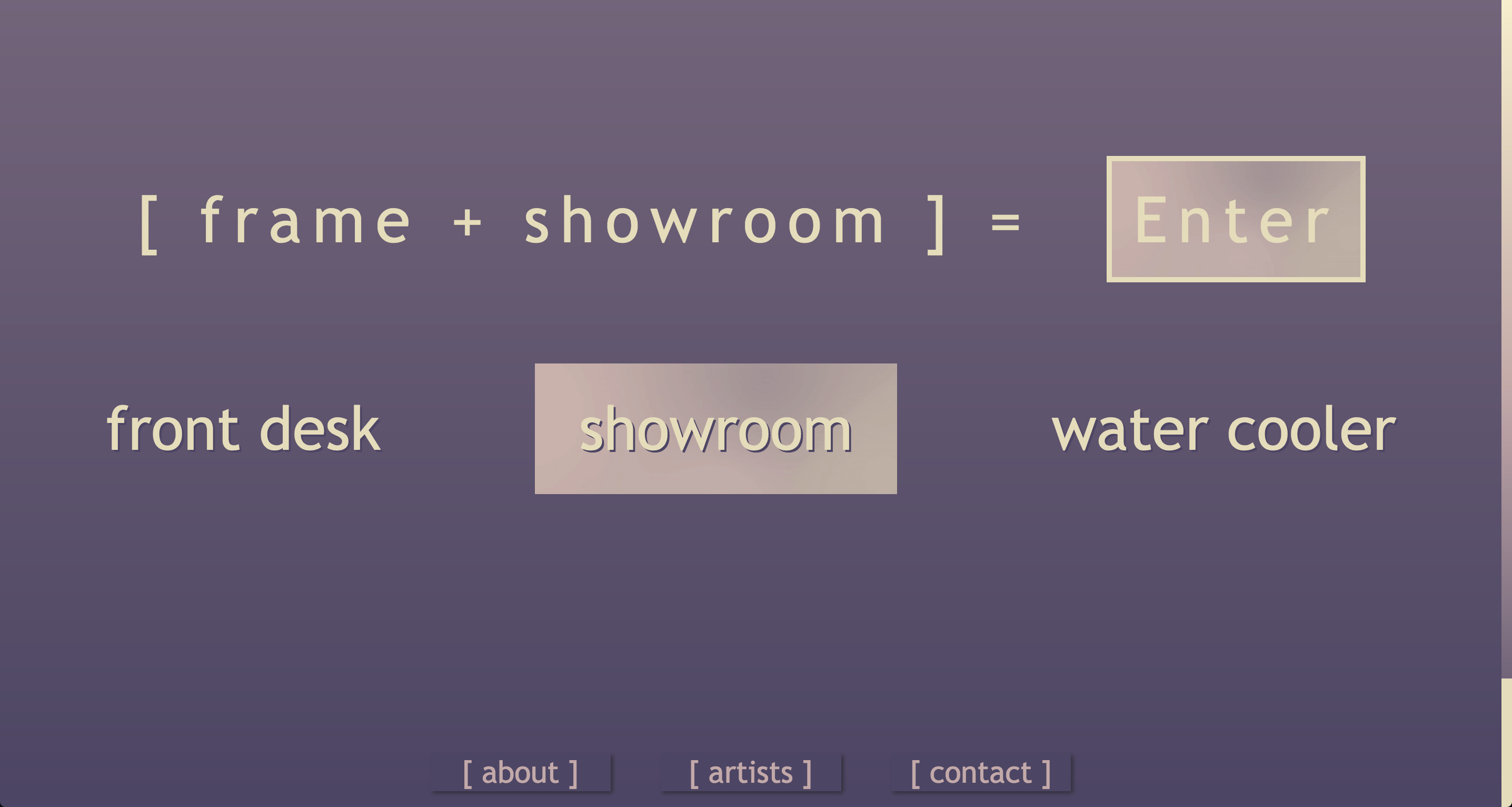 That also comes through in the sort of web hosting services that people gravitate to nowadays. Popular hosting services, such as Squarespace, are proud of the fact that they have pre-set templates for users to choose from and drag-and-drop design functions. The Internet is where you go to be lazy, almost, so that's an interesting paradox for you both to be putting on a show using the online space. With [ frame + ], you're demanding an audience's attention in a space where they're used to being lazy.