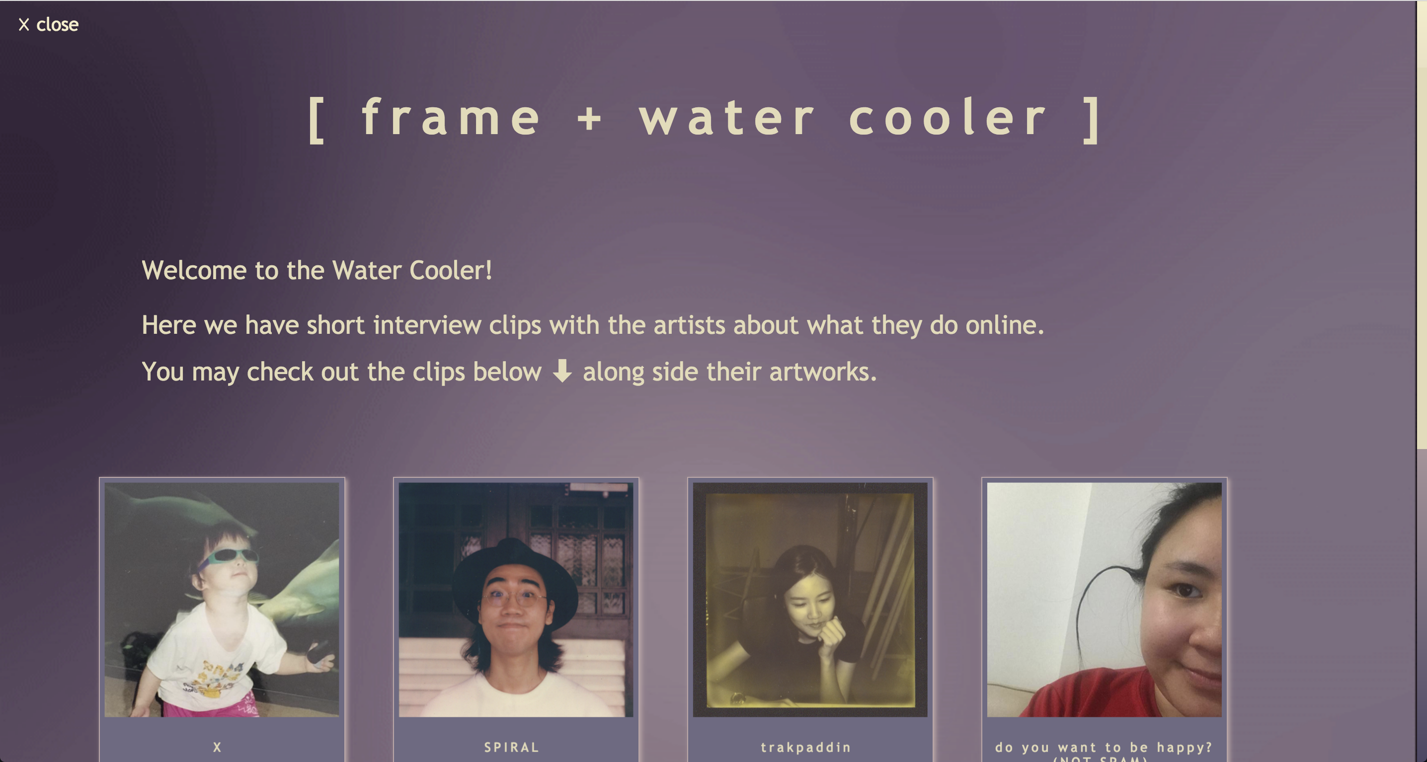 E: We were thinking of how the viewers experience could be shaped in different ways, and wanted each “room" to provide a different approach to that. With the “Front Desk", we wanted to provide an overview of the artworks from our perspective as curators. The “Showroom" was where the artists took control of framing their own works with their own agendas. With “Water Cooler", we thought that by allowing viewers an insight into the artists' own relationship to the Internet, a new perspective about the artwork could emerge.